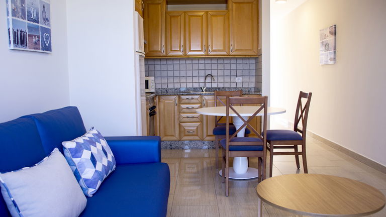 Disponen de salón-cocina, sofá-cama, escritorio y terraza privada con mobiliario. Además, están dotados de electrodomésticos como nevera, microondas, cafetera, tostadora y un completo menaje, pensado para aquellos que desean disfrutar de una estancia más autónoma.