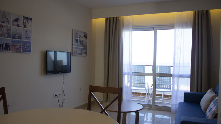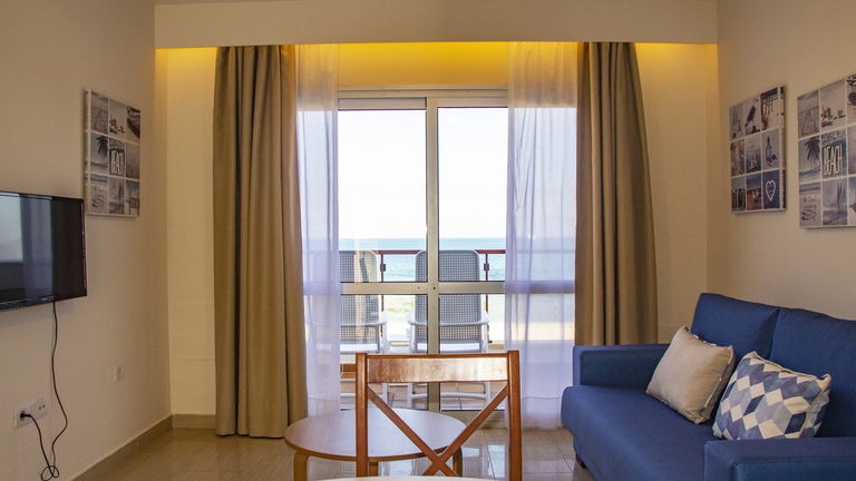 Nuestros apartamentos con vistas al mar, totalmente equipados, están diseñados para aquellos que elijan una estancia más independiente. Todos los apartamentos tienen vistas a la isla de Lobos, a Lanzarote, a la bahía de Corralejo y a la piscina.